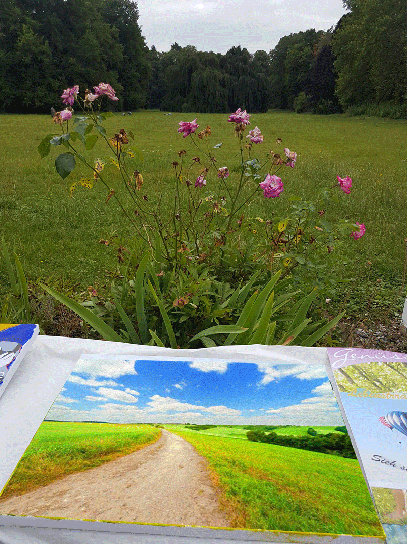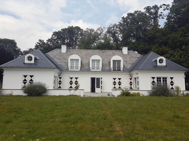 Hier haben wir einen luftigen, hellen und inspirierenden Raum mit einem Natur Park inkl. Teich auf 15 tsd. Qm abgeschlossener Fläche ganz für uns alleine.